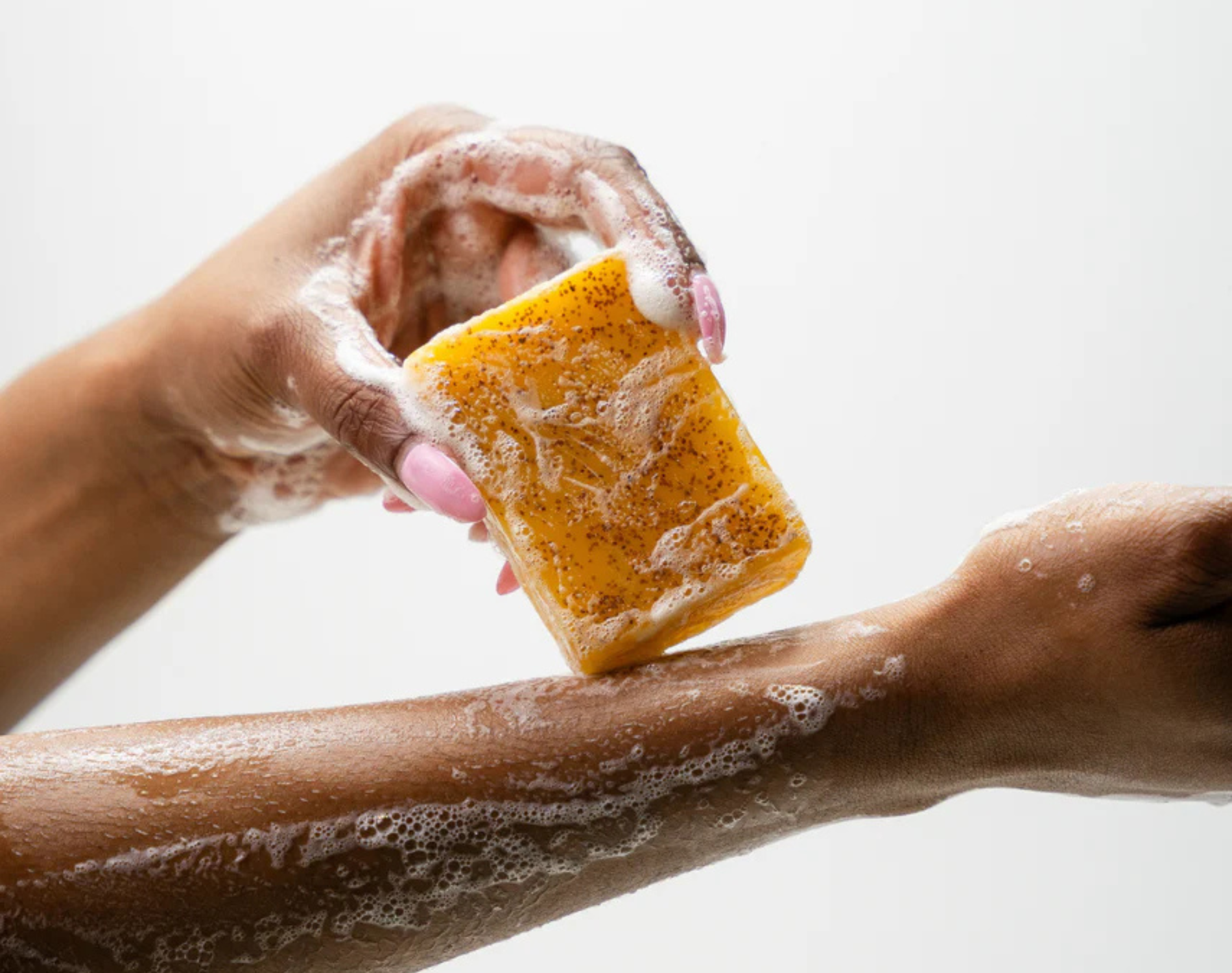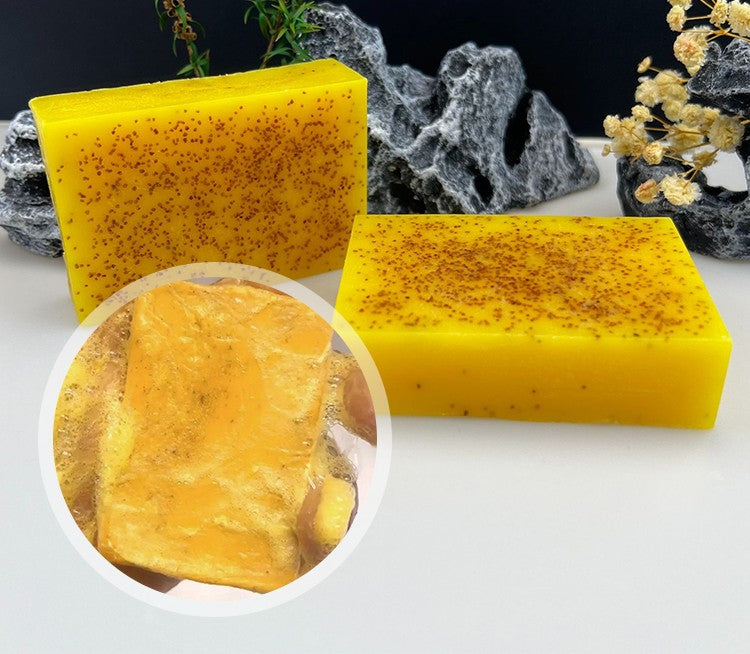 Grâce à la puissance naturelle du curcuma et de l’acide kojique, notre savon agit efficacement sur les taches brunes et le teint irrégulier en seulement deux semaines